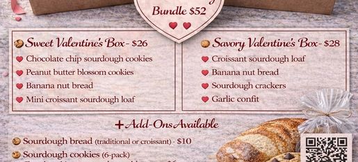 Valentine’s Day Boxes Available Now Add on bread or cookies • Pickup or delivery